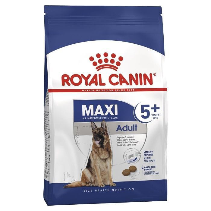 Para perros mayores de 5 años, ROYAL CANIN® Maxi Adult 5+ es una fórmula nutricionalmente completa y equilibrada, especialmente diseñada para satisfacer las necesidades particulares de tu perro grande y darle apoyo durante los últimos años de su edad adulta.